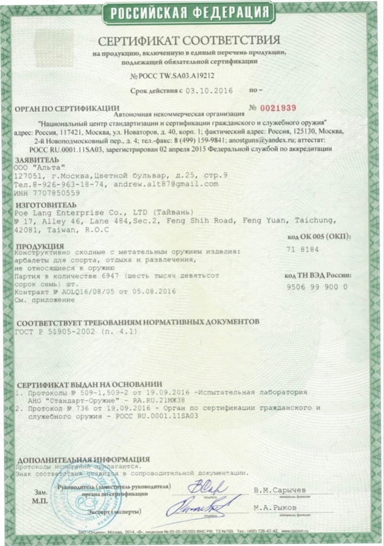• Тип конструкции: Арбалеты-пистолеты