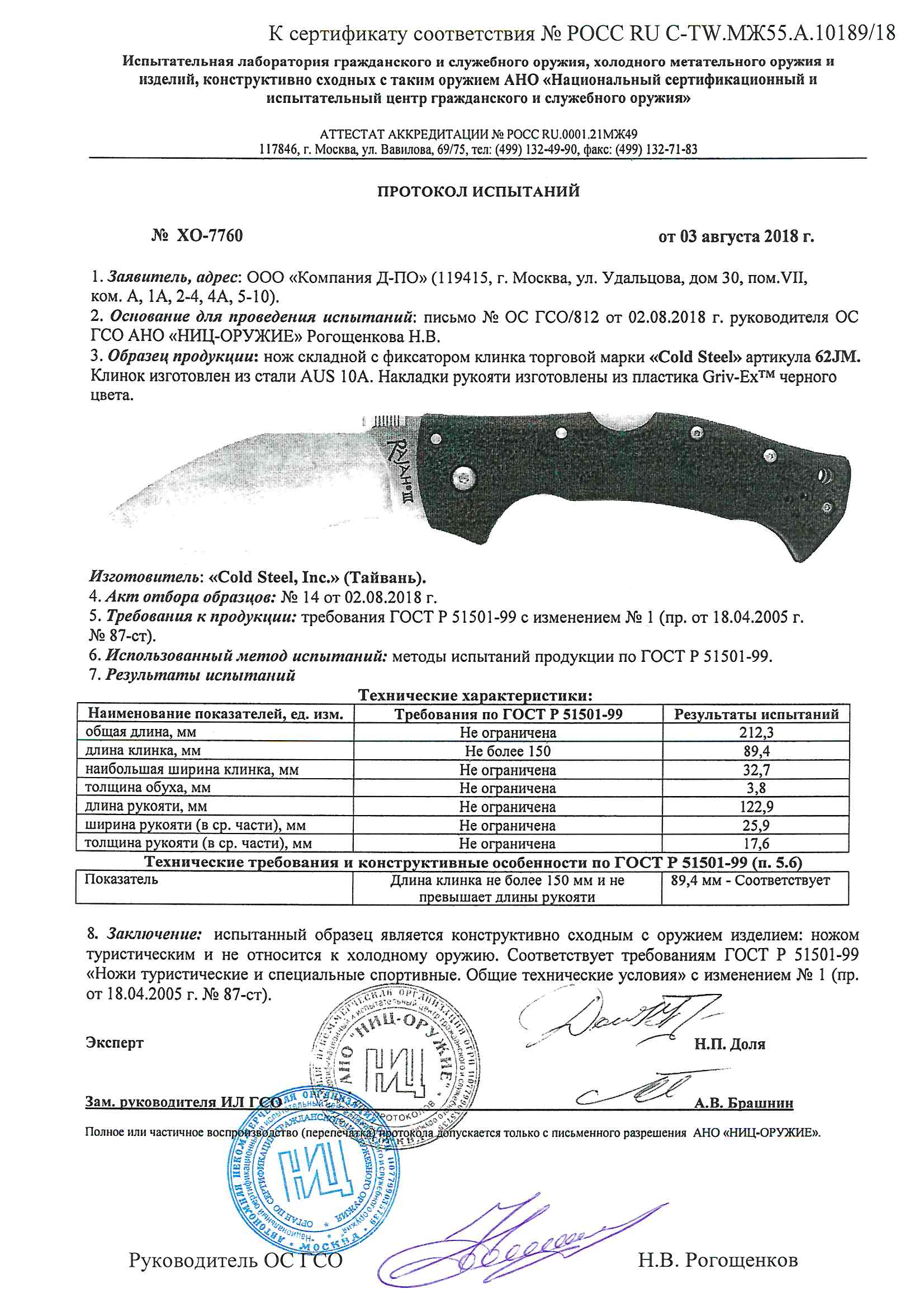 • Длина клинка (мм): 89