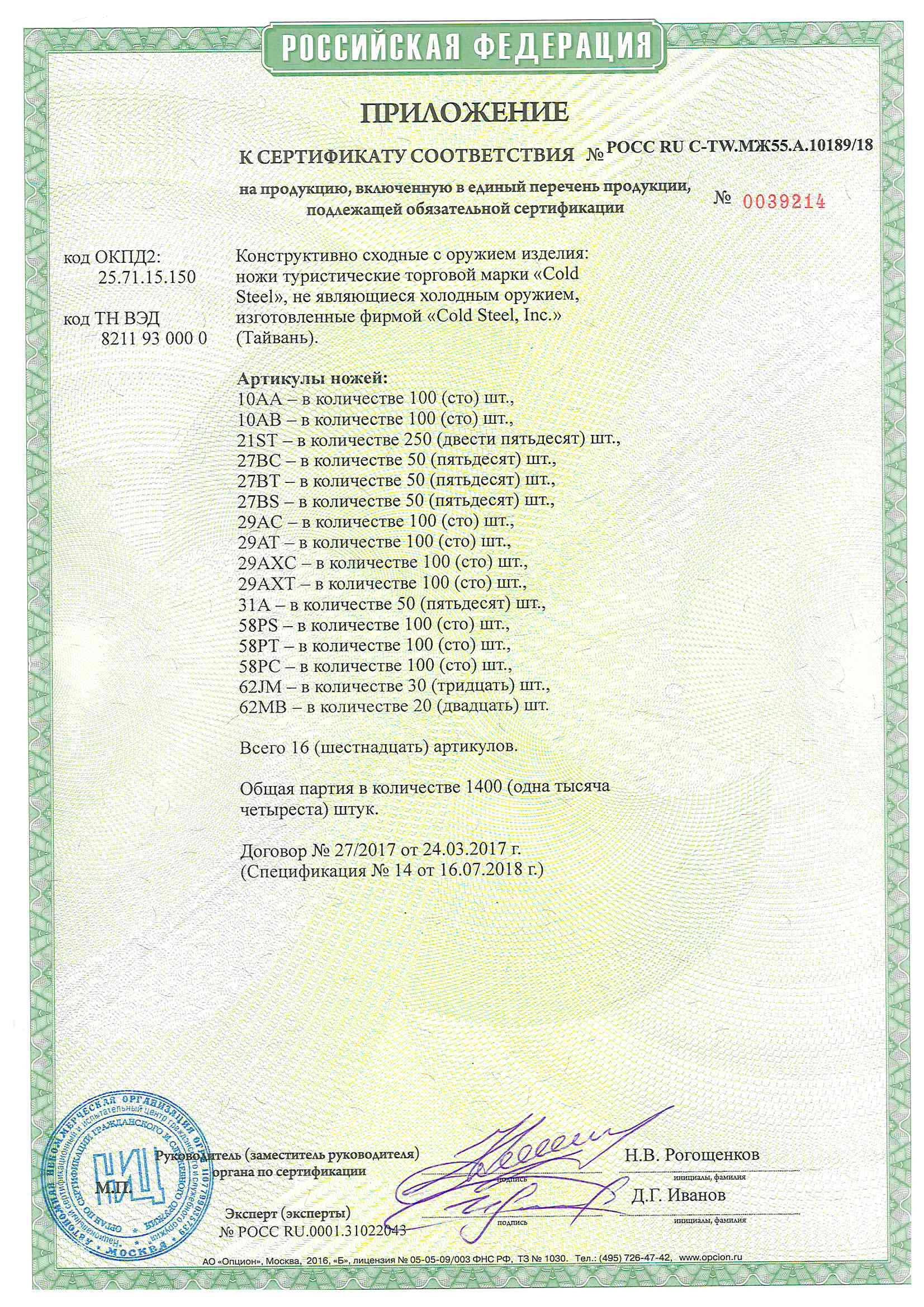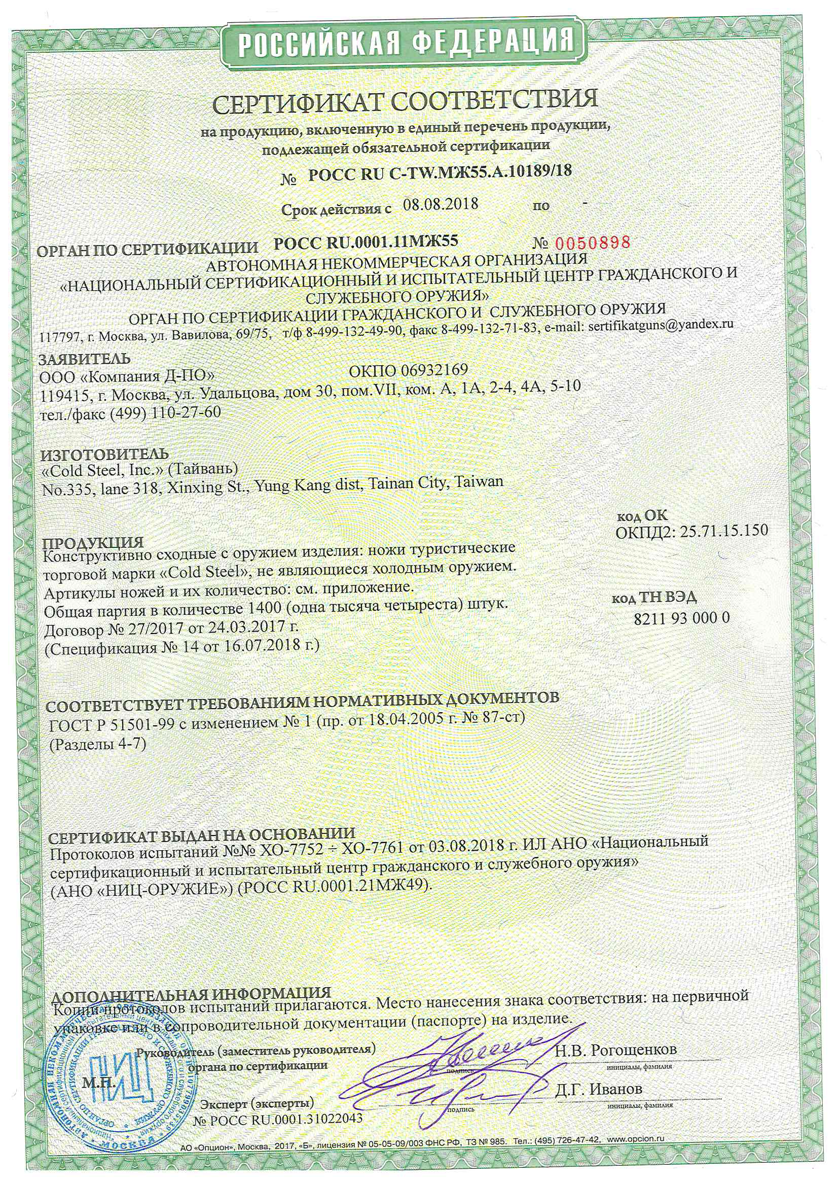 • Материал клинка: