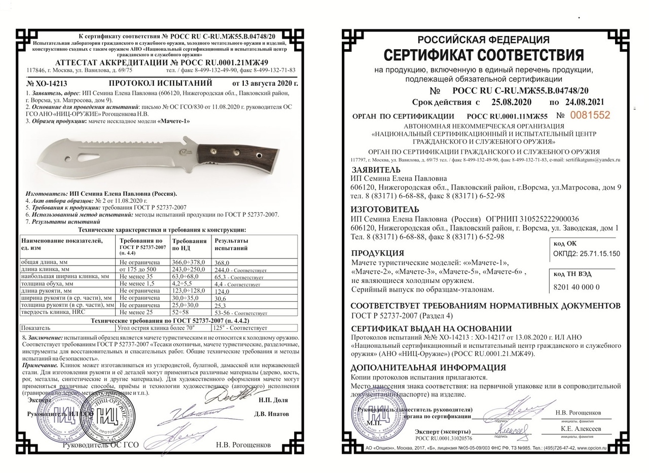 Мачете №1 Семина, сталь, 65х13 рукоять венге