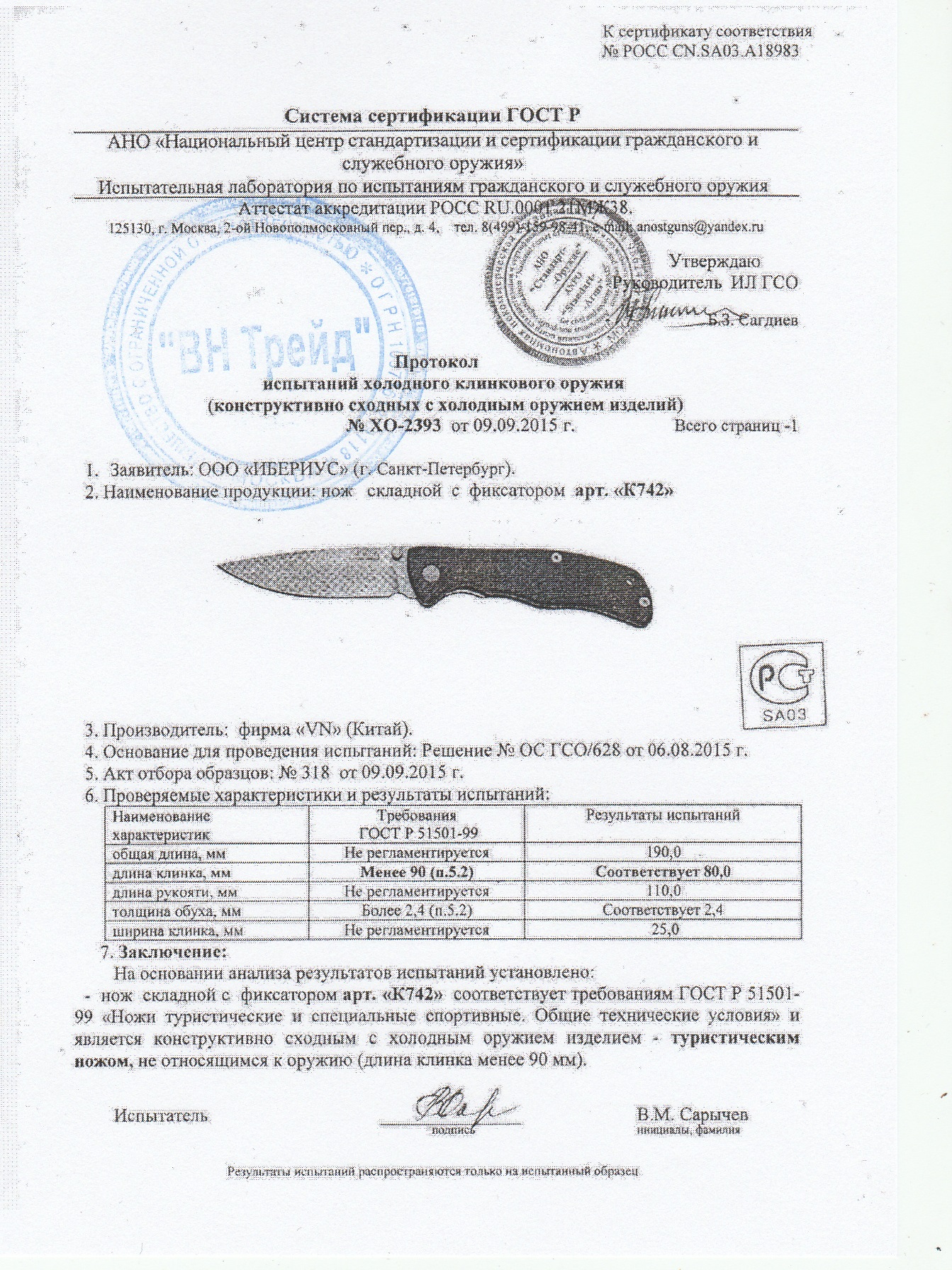 • Тип ножа: Нож