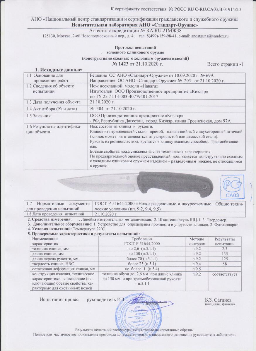 Нож Кизляр "Навага" 015301 артикул 03079 купить в Санкт-Петербурге по цене 1 840 рублей в интернет-магазине Steel-Gun. Получите заказ самовывозом в Санкт-Петербурге бесплатно или закажите доставку в любой регион России транспортными компаниями СДЭК, Яндекс.Доставка или Почтой России. Оплатите онлайн или при получении (при доставке до 7 дней). Подробнее об оплате и доставке. Лицензия на приобретение не требуется. Перед оформлением заказа обязательно уточняйте комплектацию товара по телефону 8 (904) 215-66-30 (в рабочее время) или по e-mail и системе обратной связи (в любое удобное для вас время). Информация от товаре Нож Кизляр "Навага" 015301 артикул 03079 носит ознакомительный характер, характеристики, внешний вид, цвет и комплектация могут быть изменены производителем без уведомления.