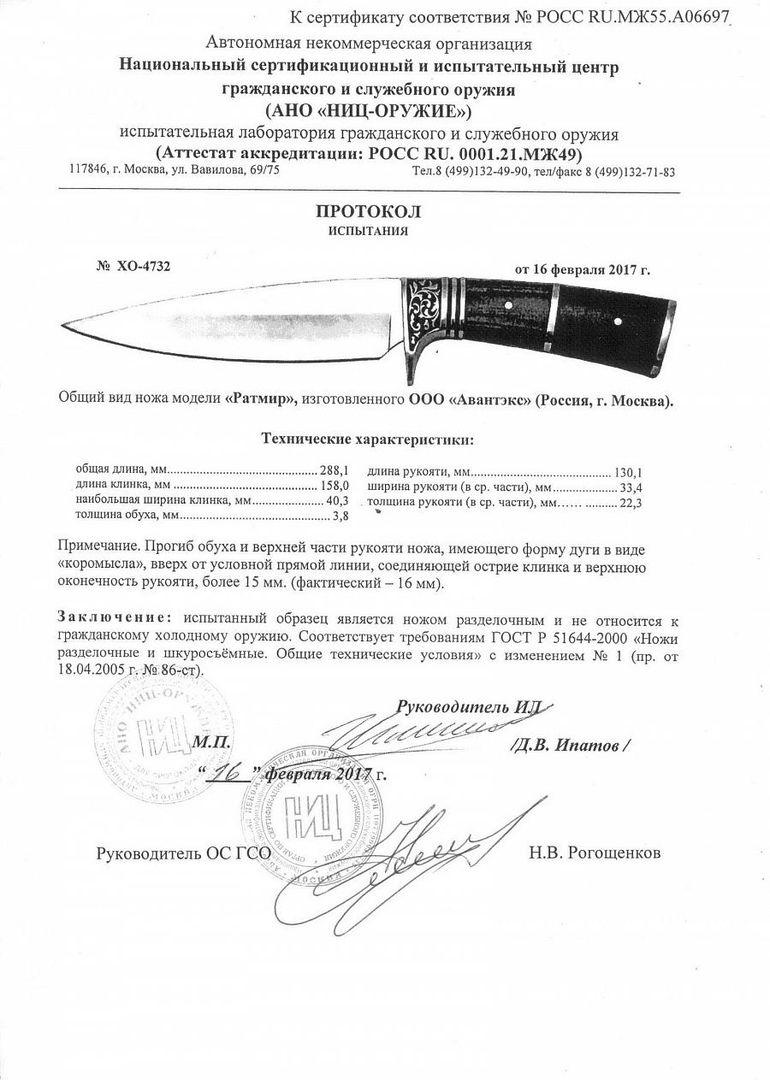 • Конструкция ножа: С фиксированным клинком