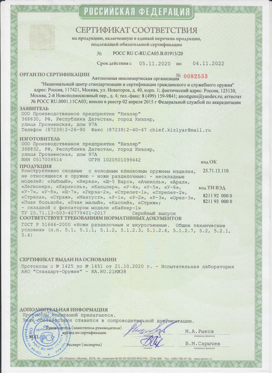 Нож Кизляр "Караколь" 015101 артикул 03048 купить в Санкт-Петербурге по цене 0 рублей в интернет-магазине Steel-Gun. Получите заказ самовывозом в Санкт-Петербурге бесплатно или закажите доставку в любой регион России транспортными компаниями СДЭК, Яндекс.Доставка или Почтой России. Оплатите онлайн или при получении (при доставке до 7 дней). Подробнее об оплате и доставке. Лицензия на приобретение не требуется. Перед оформлением заказа обязательно уточняйте комплектацию товара по телефону 8 (904) 215-66-30 (в рабочее время) или по e-mail и системе обратной связи (в любое удобное для вас время). Информация от товаре Нож Кизляр "Караколь" 015101 артикул 03048 носит ознакомительный характер, характеристики, внешний вид, цвет и комплектация могут быть изменены производителем без уведомления.