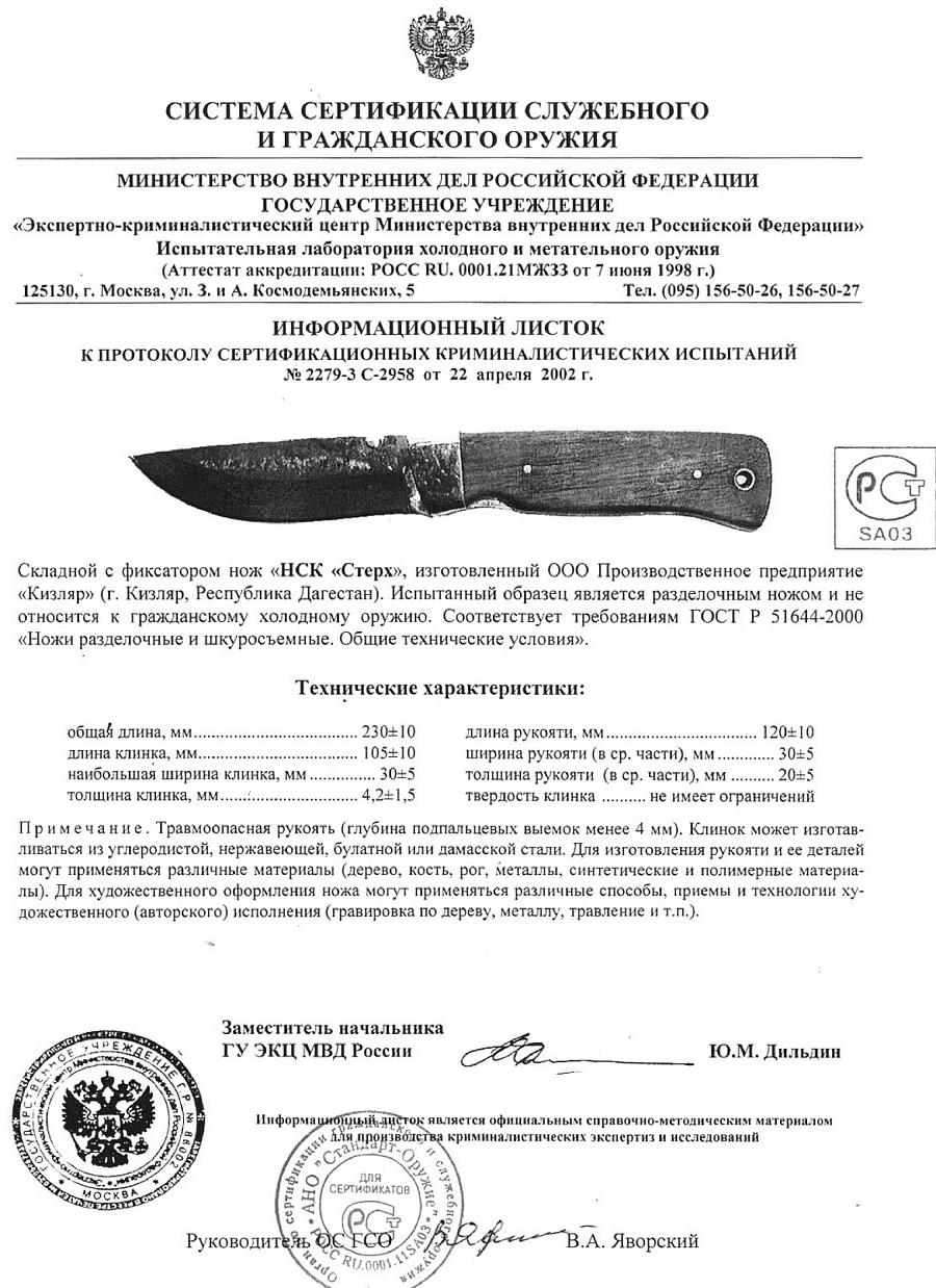 Нож Кизляр "НСК Стерх" 01100 арт. 08029
