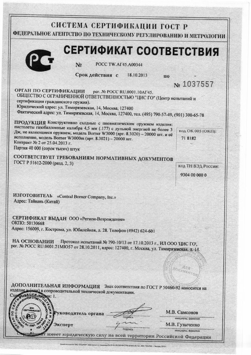 Покупался как игрушка, Central Borner W3000 (m) является точной копией известного пистолета, можно пугать. Держится в руке удобно, комфортно целиться, мушка с фиброй. Сила выстрела огромная, пробивная способность, показал высокую кучность. С патронами проблем нет, распространенный стандарт. Только материалы совсем не качественные, мягкий хрупкий сплав, при любом падении появляются следы.
