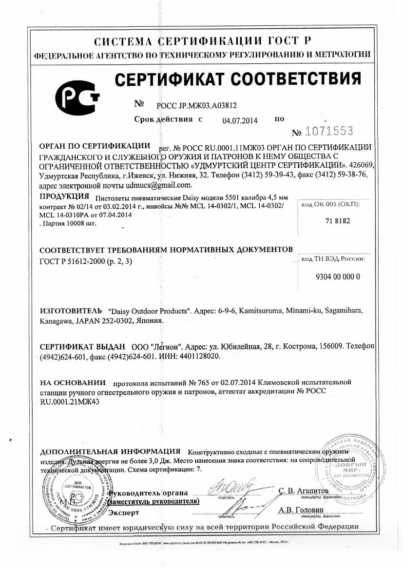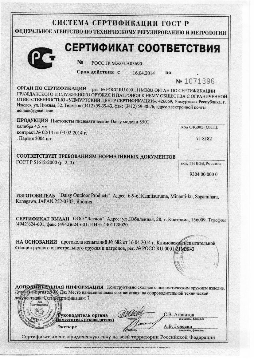 Пневматический пистолет Daisy 5501, калибр 4,5 мм купить в Санкт-Петербурге по цене 0 рублей в интернет-магазине Steel-Gun. Получите заказ самовывозом в Санкт-Петербурге бесплатно или закажите доставку в любой регион России транспортными компаниями СДЭК, Яндекс.Доставка или Почтой России. Оплатите онлайн или при получении (при доставке до 7 дней). Подробнее об оплате и доставке. Лицензия на приобретение не требуется. Перед оформлением заказа обязательно уточняйте комплектацию товара по телефону 8 (904) 215-66-30 (в рабочее время) или по e-mail и системе обратной связи (в любое удобное для вас время). Информация от товаре Пневматический пистолет Daisy 5501, калибр 4,5 мм носит ознакомительный характер, характеристики, внешний вид, цвет и комплектация могут быть изменены производителем без уведомления.