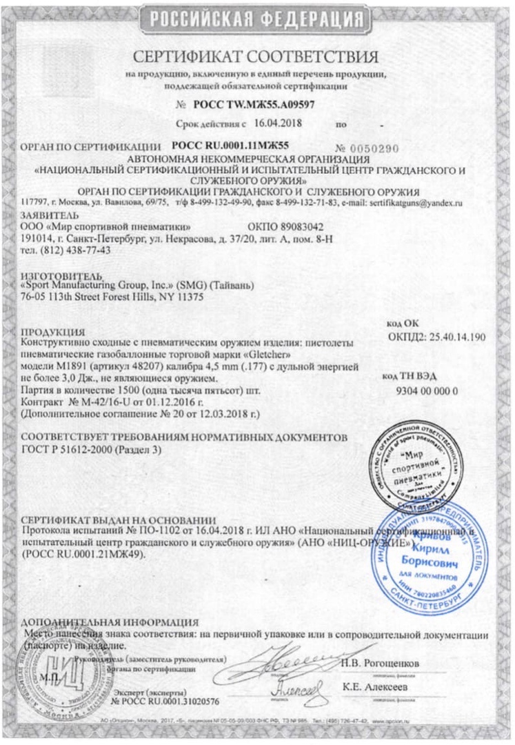 Пневматический пистолет Gletcher M1891 (обрез Мосина) 4,5 мм купить в Санкт-Петербурге по цене 0 рублей в интернет-магазине Steel-Gun. Получите заказ самовывозом в Санкт-Петербурге бесплатно или закажите доставку в любой регион России транспортными компаниями СДЭК, Яндекс.Доставка или Почтой России. Оплатите онлайн или при получении (при доставке до 7 дней). Подробнее об оплате и доставке. Лицензия на приобретение не требуется. Перед оформлением заказа обязательно уточняйте комплектацию товара по телефону 8 (904) 215-66-30 (в рабочее время) или по e-mail и системе обратной связи (в любое удобное для вас время). Информация от товаре Пневматический пистолет Gletcher M1891 (обрез Мосина) 4,5 мм носит ознакомительный характер, характеристики, внешний вид, цвет и комплектация могут быть изменены производителем без уведомления.
