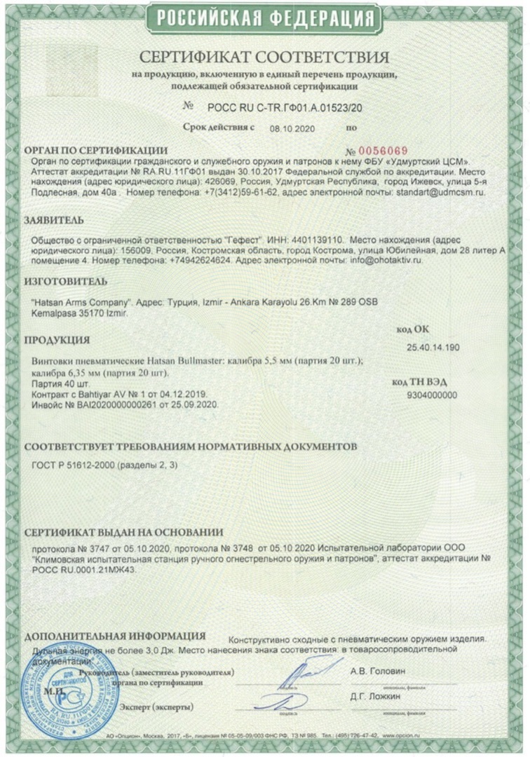 e-mail и системе обратной связи (в любое удобное для вас время). Информация от товаре Пневматическая винтовка Hatsan BULLMASTER калибр 5.5 мм, 3 Дж, PCP пластик носит ознакомительный характер, характеристики, внешний вид, цвет и комплектация могут быть изменены производителем без уведомления.