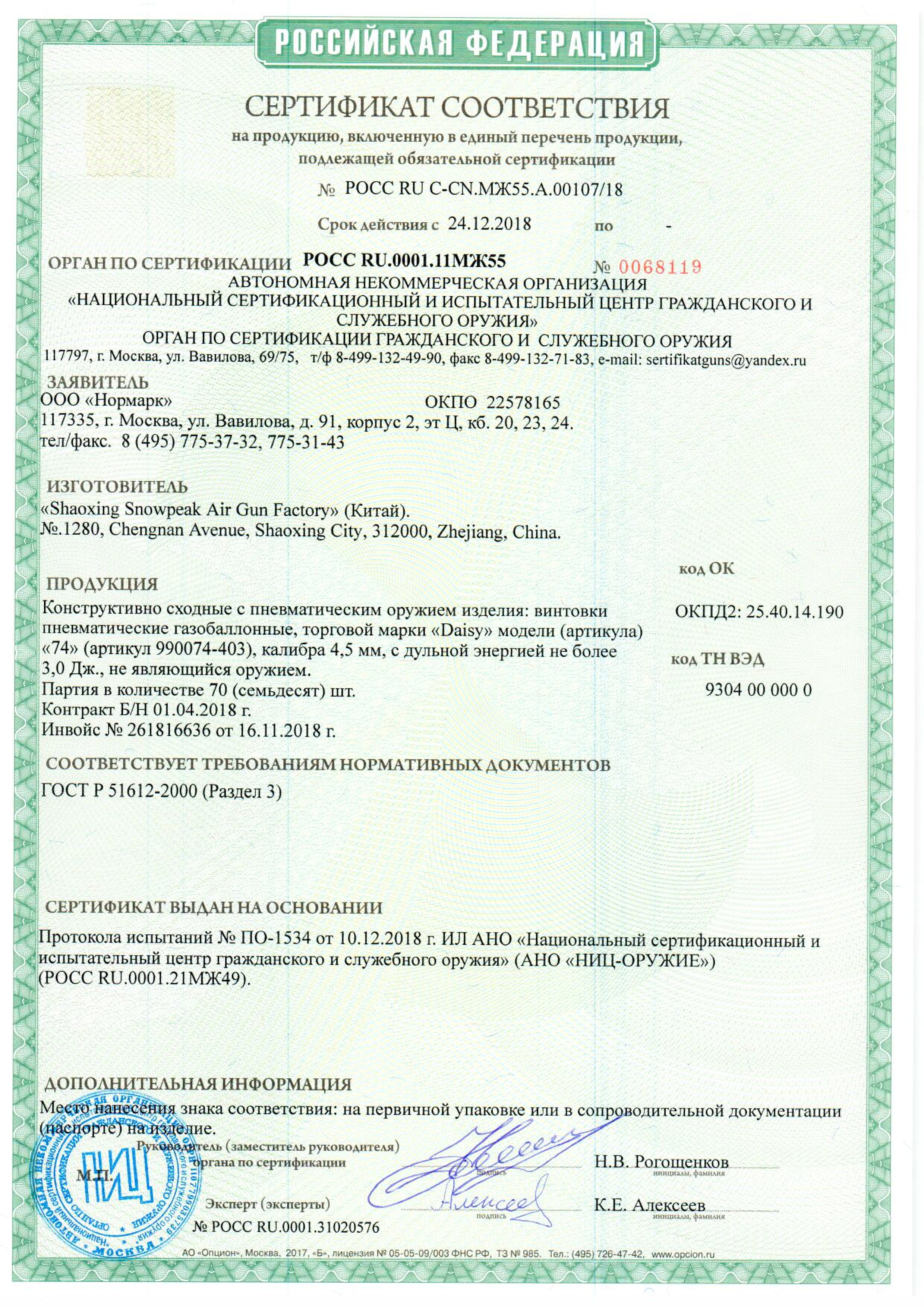 Винтовка пневматическая DAISY 74 CO2, кал. 4.5 мм