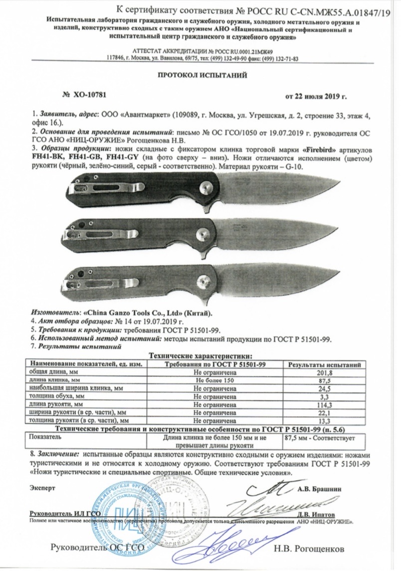• Конструкция ножа: Складной
