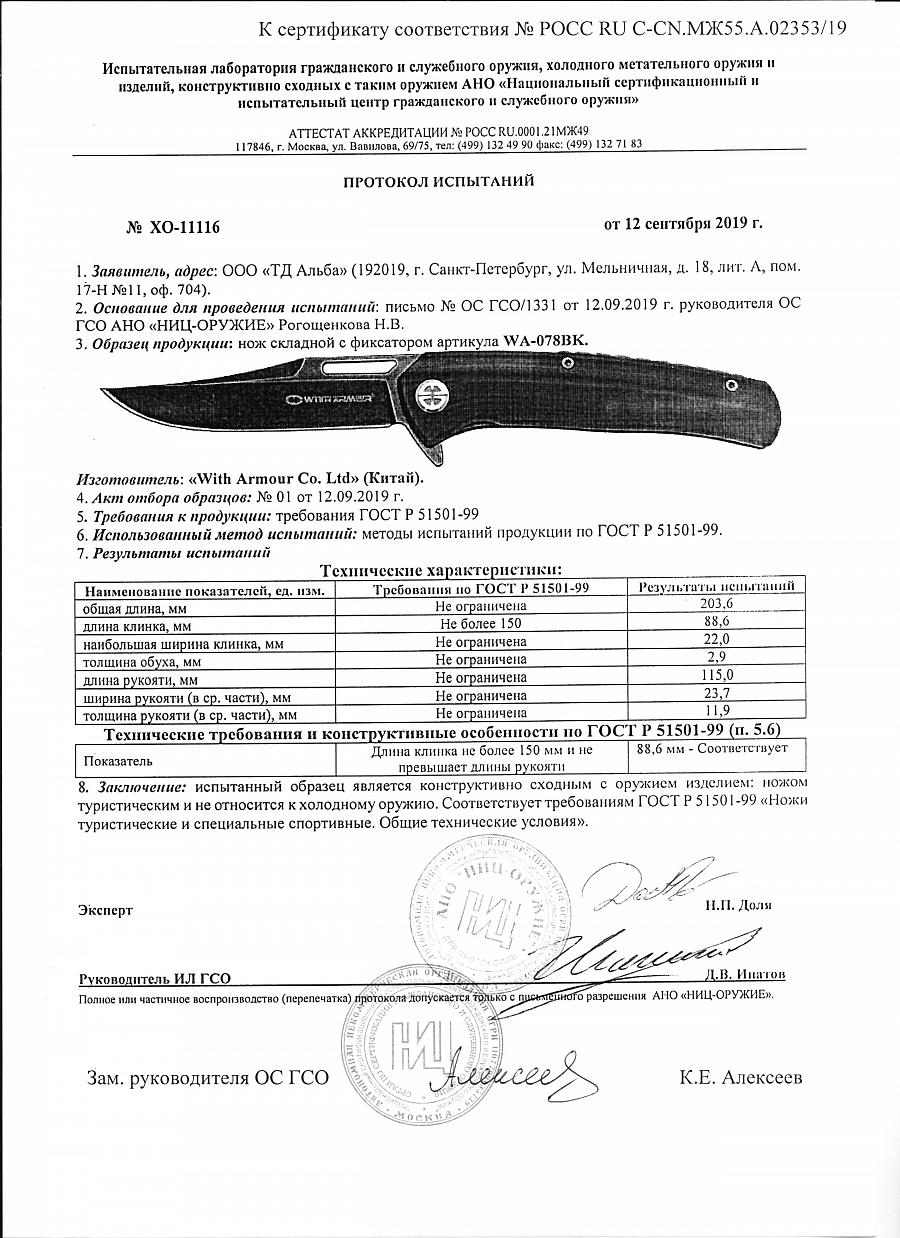 Нож складной WA-078BK купить в Санкт-Петербурге по цене 0 рублей в интернет-магазине Steel-Gun. Получите заказ самовывозом в Санкт-Петербурге бесплатно или закажите доставку в любой регион России транспортными компаниями СДЭК, Яндекс.Доставка или Почтой России. Оплатите онлайн или при получении (при доставке до 7 дней). Подробнее об оплате и доставке. Лицензия на приобретение не требуется. Перед оформлением заказа обязательно уточняйте комплектацию товара по телефону 8 (904) 215-66-30 (в рабочее время) или по e-mail и системе обратной связи (в любое удобное для вас время). Информация от товаре Нож складной WA-078BK носит ознакомительный характер, характеристики, внешний вид, цвет и комплектация могут быть изменены производителем без уведомления.
