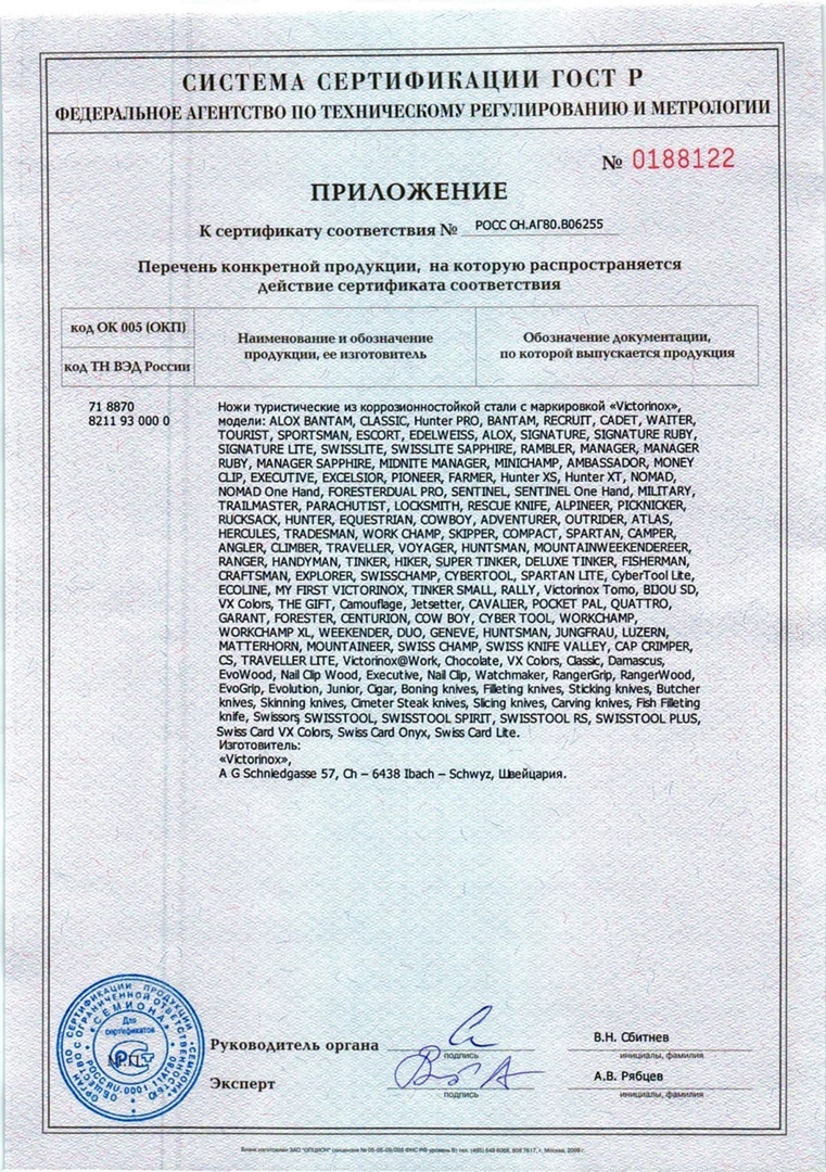 Набор функций - 10: большое лезвие серрейтор с фиксацией и возможностью открытия одной рукой; крестовая отвертка; шило; нож для открывания консервов; с малой плоской отверткой; комбинированный инструмент с открывалкой для бутылок; плоской отверткой; инструментом для снятия изоляции; кольцо для подвеса; пила по дереву; пинцет; зубочистка.