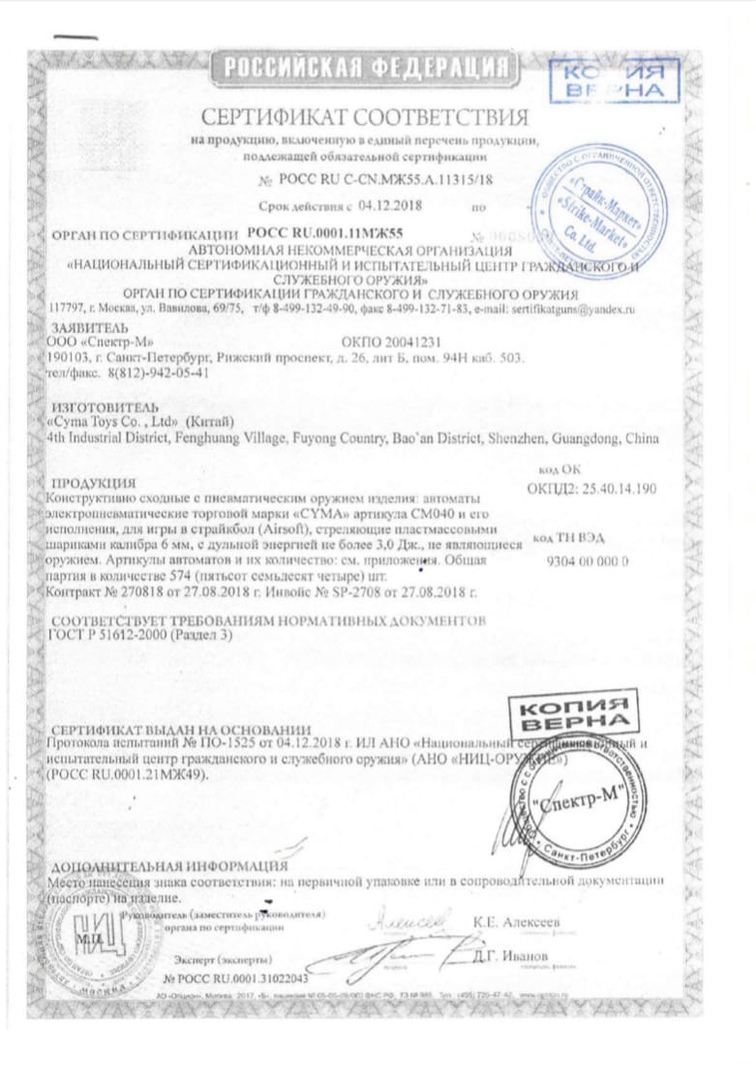 Страйкбольный автомат (Cyma) CM077C RK-103 Zhukov (АК-103), RIS, ЗУ, АКБ купить в Санкт-Петербурге по цене 0 рублей в интернет-магазине Steel-Gun. Получите заказ самовывозом в Санкт-Петербурге бесплатно или закажите доставку в любой регион России транспортными компаниями СДЭК, Яндекс.Доставка или Почтой России. Оплатите онлайн или при получении (при доставке до 7 дней). Подробнее об оплате и доставке. Лицензия на приобретение не требуется. Перед оформлением заказа обязательно уточняйте комплектацию товара по телефону 8 (904) 215-66-30 (в рабочее время) или по e-mail и системе обратной связи (в любое удобное для вас время). Информация от товаре Страйкбольный автомат (Cyma) CM077C RK-103 Zhukov (АК-103), RIS, ЗУ, АКБ носит ознакомительный характер, характеристики, внешний вид, цвет и комплектация могут быть изменены производителем без уведомления.